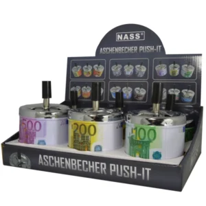 Der Drehaschenbecher: Eine saubere Sache. Der Dreh-Aschenbecher ist aus Metall mit Chromfarben, poliertem Deckel und bietet 3 Ablageflächen. Durch kurzes Drücken verschwindet die Asche im Bauch des Aschenbechers. Durch den automatischen Verschluss entsteht kein unangenehmer, kalter Zigarettengeruch und bei Wind gibt es keine Asche in der Luft.