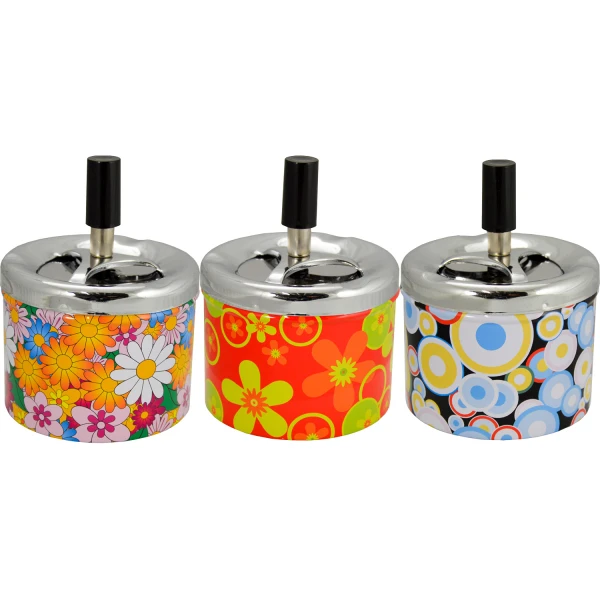 Der Drehaschenbecher: Eine saubere Sache. Der Dreh-Aschenbecher ist aus Metall mit Chromfarben, poliertem Deckel und bietet 3 Ablageflächen. Durch kurzes Drücken verschwindet die Asche im Bauch des Aschenbechers. Durch den automatischen Verschluss entsteht kein unangenehmer, kalter Zigarettengeruch und bei Wind gibt es keine Asche in der Luft.