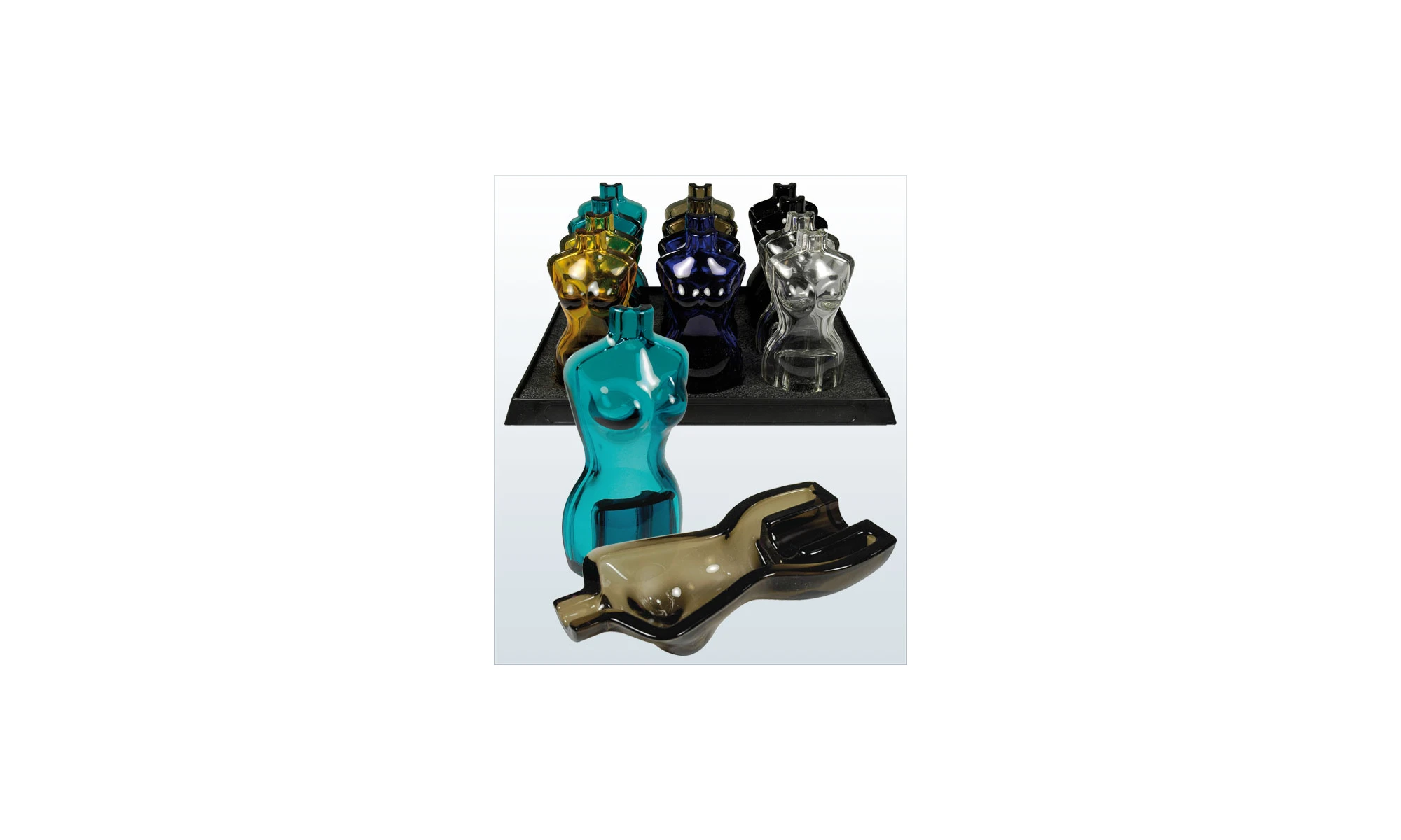 Großer Aschenbecher aus Glas in Form einer Frau.