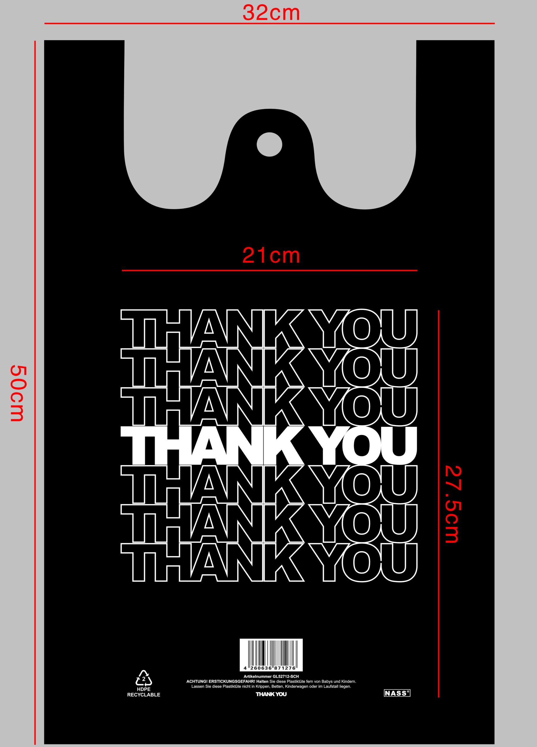 Hemdchentragetüte „Thank You“ 14my, 500er Pack, schwarz