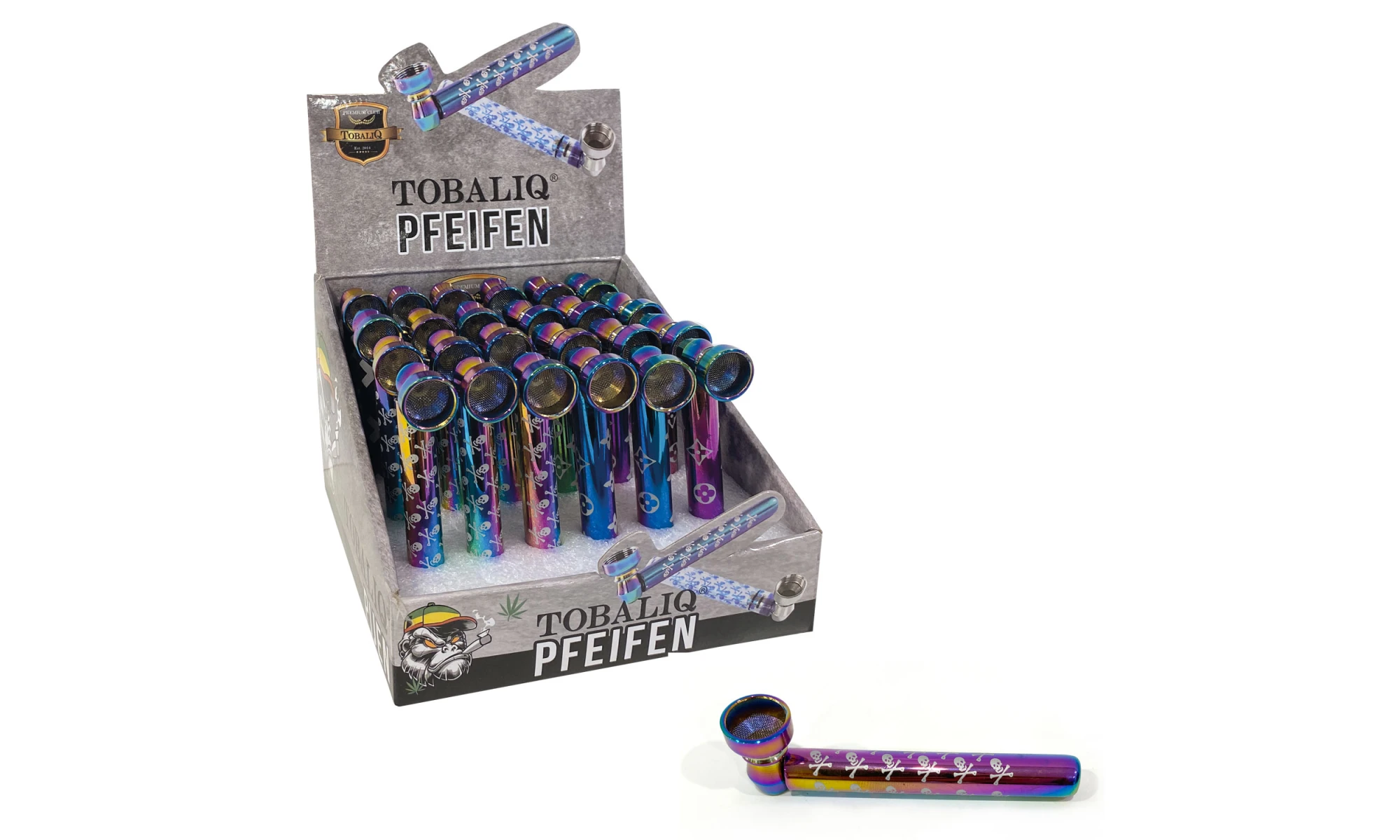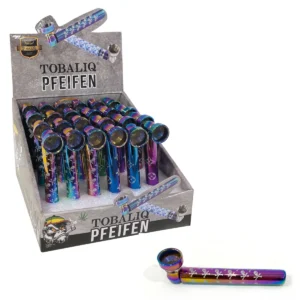 – Hochwertige Metallpfeife in lebendigen Metallic-Farben und Mustern