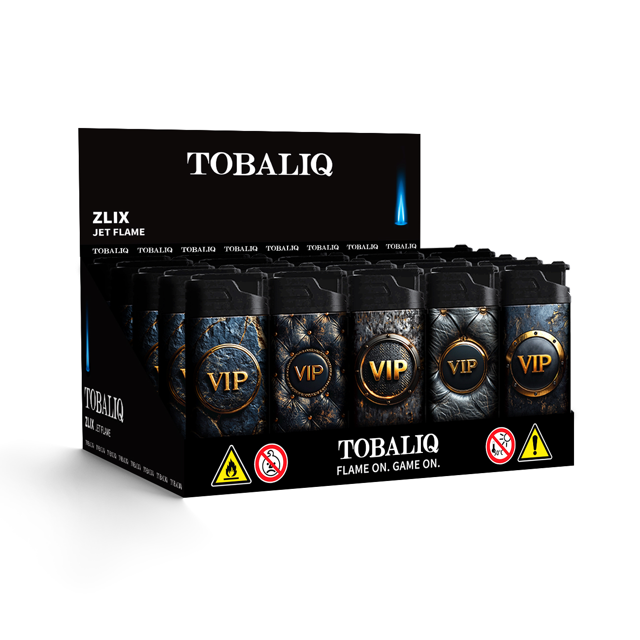 Das Tobaliq ZLIX Jet-Flame-Feuerzeug – 20er-Display VIP Edition vereint moderne Technik mit exklusivem Design. Dieses robuste Jet-Flame-Feuerzeug verfügt über eine dünne Schutzklappe, eine kräftige, blaue Flamme und ein ansprechendes Äußeres. Es ist nachfüllbar und ideal zum zuverlässigen Anzünden bei Wind und Wetter. Erhältlich in fünf verschiedenen Motiven, jeweils fünf Stück, sortiert im 20er-Display.