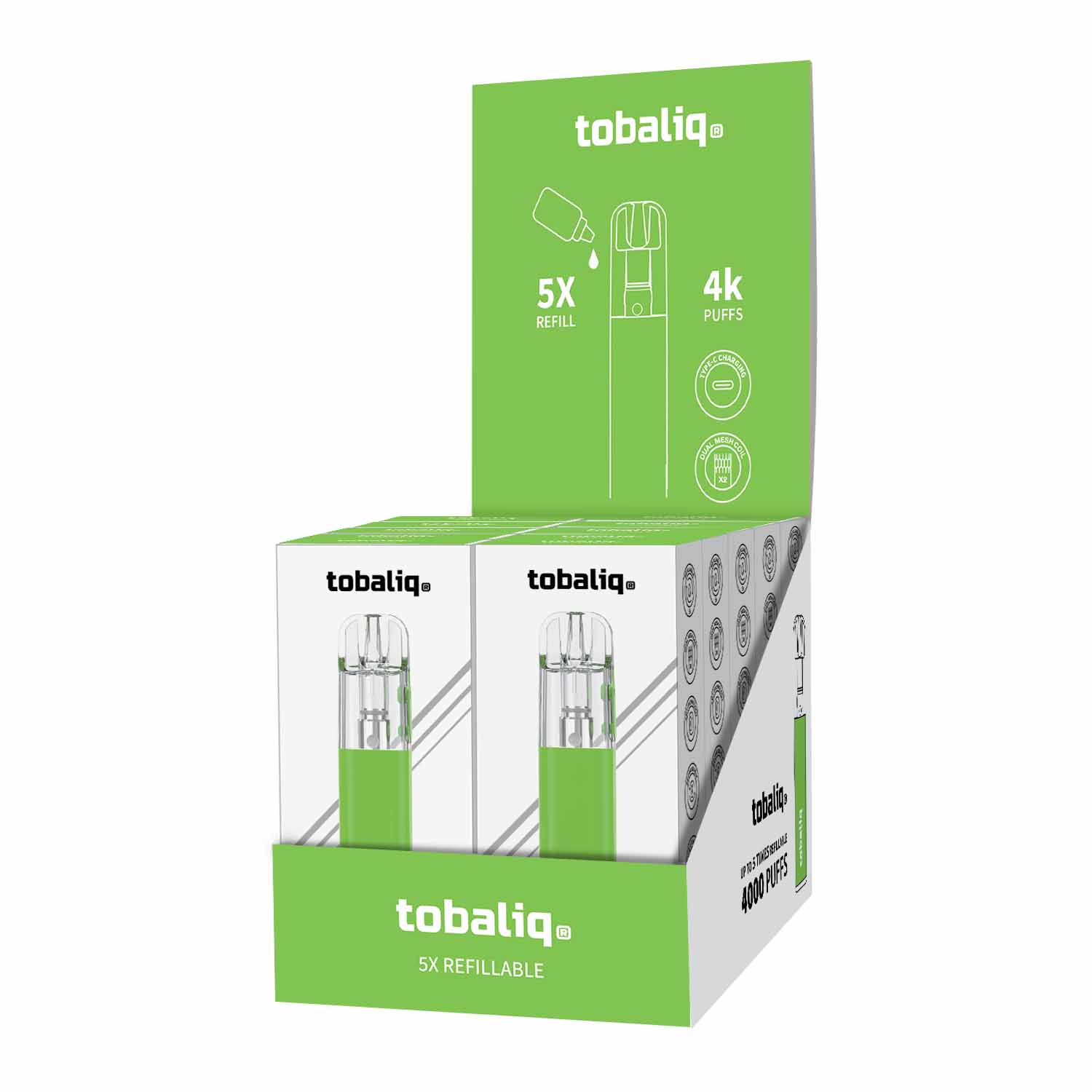 TOBALIQ Vape V1, 4000 Puffs – Green, inkl. USB-Ladekabel